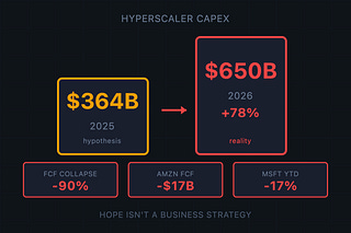 Six months ago it was $364 billion. Now it's $650 billion. Free cash flow collapsing. Amazon may raise debt. The procurement mindset doesn't scale…