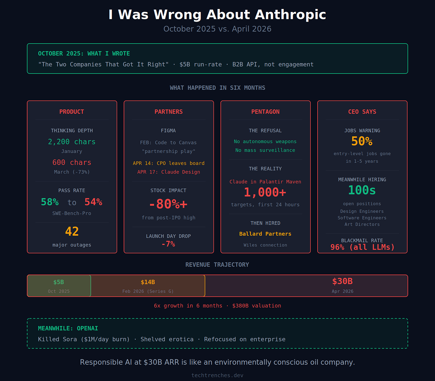 I put Anthropic in the “builds” category. Called them proof that responsible AI could be profitable.