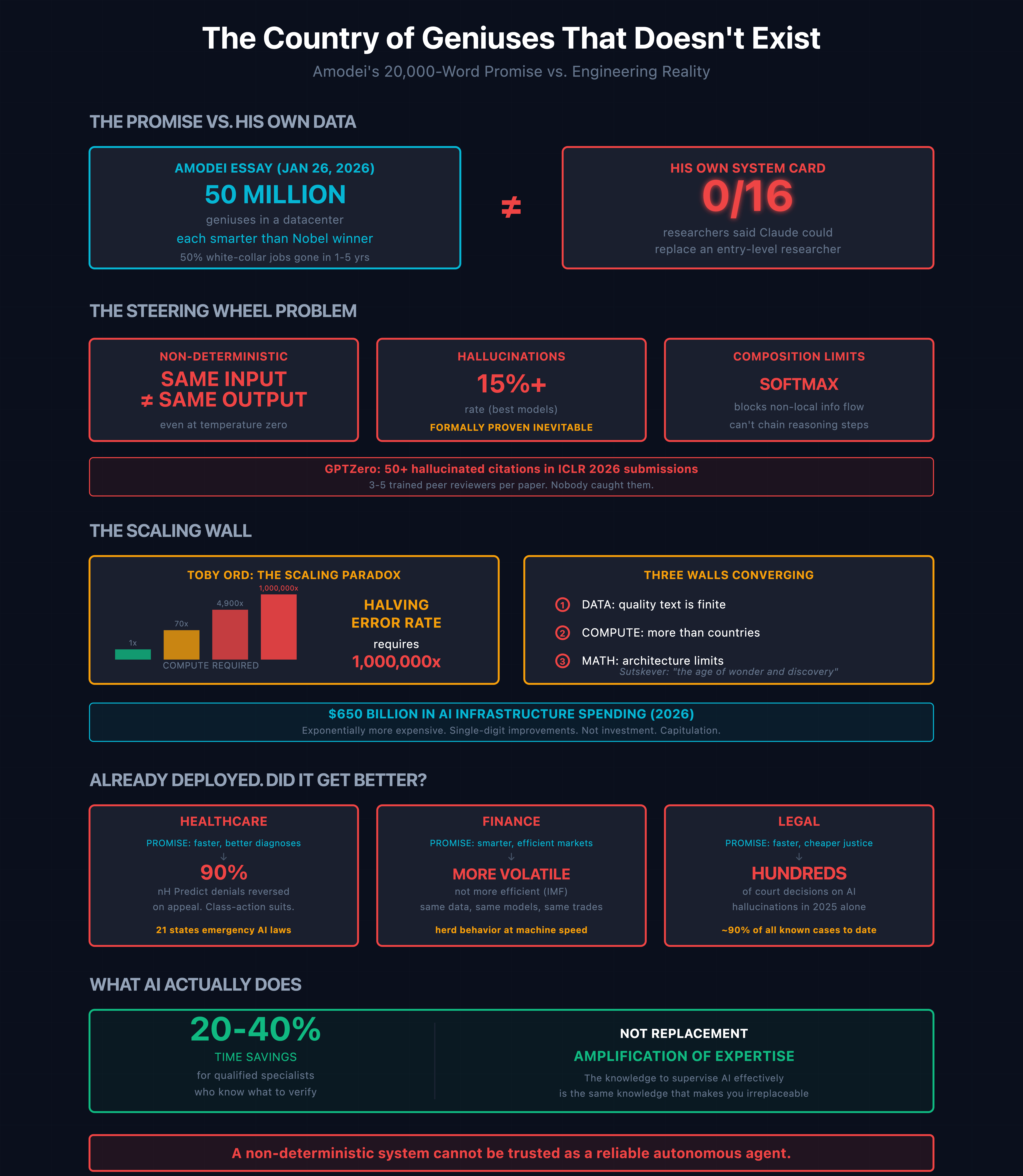The country of geniuses doesn’t exist. What exists is a powerful tool that requires skilled humans to operate safely. Don’t let a 20,000-word essay convince you the steering wheel doesn’t matter just because the destination sounds exciting.